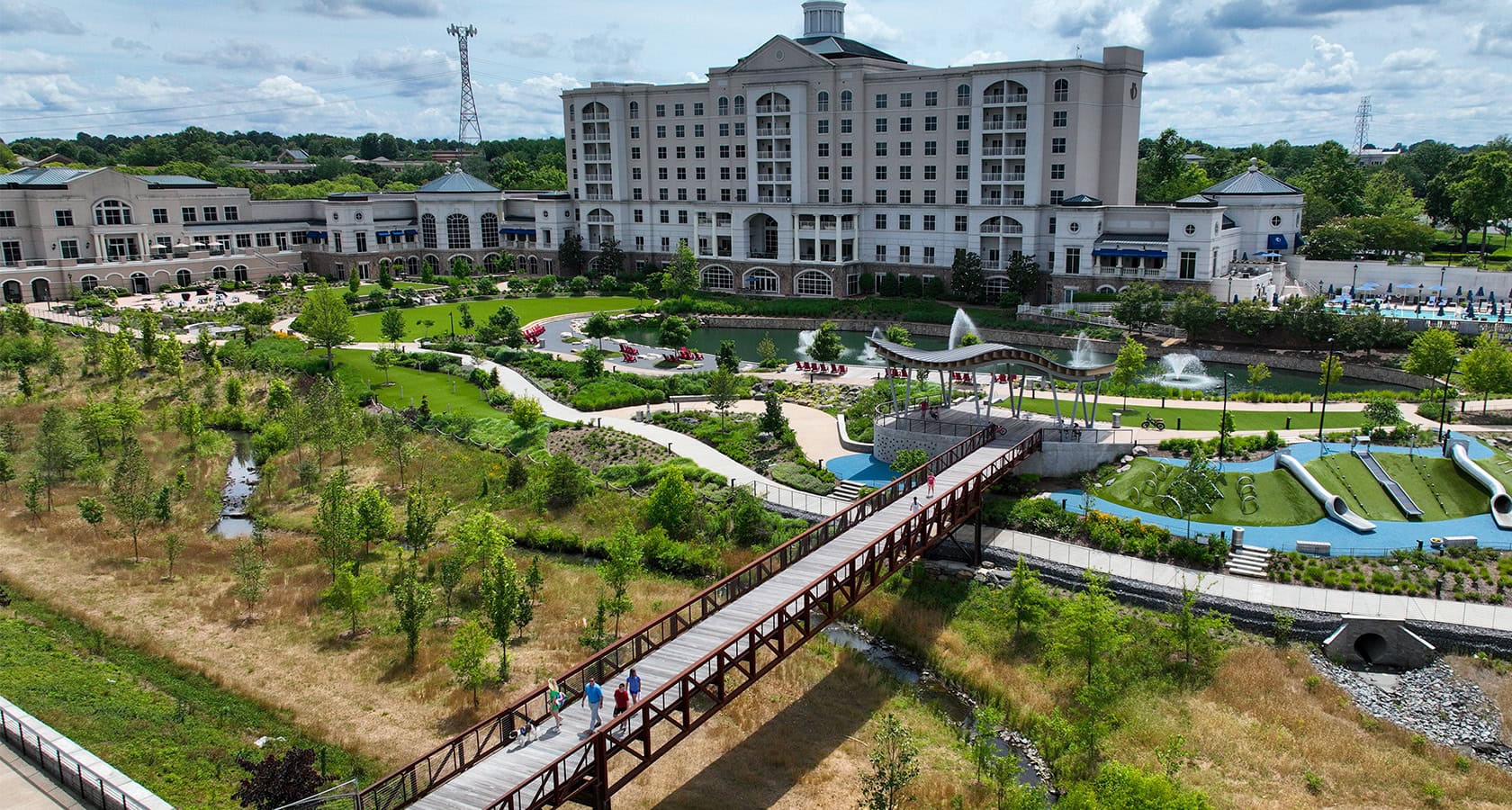 Transforming this car-centric environment into a pedestrian-friendly community began with repurposing underutilized spaces into public open space. The six-acre golf course at the Ballantyne Hotel presented our team with the ideal setting for a signature park, known as Stream Park. Learn more about our approach to realizing Northwood’s vision through thoughtful landscape design, energetic programming, and intentional placemaking.
