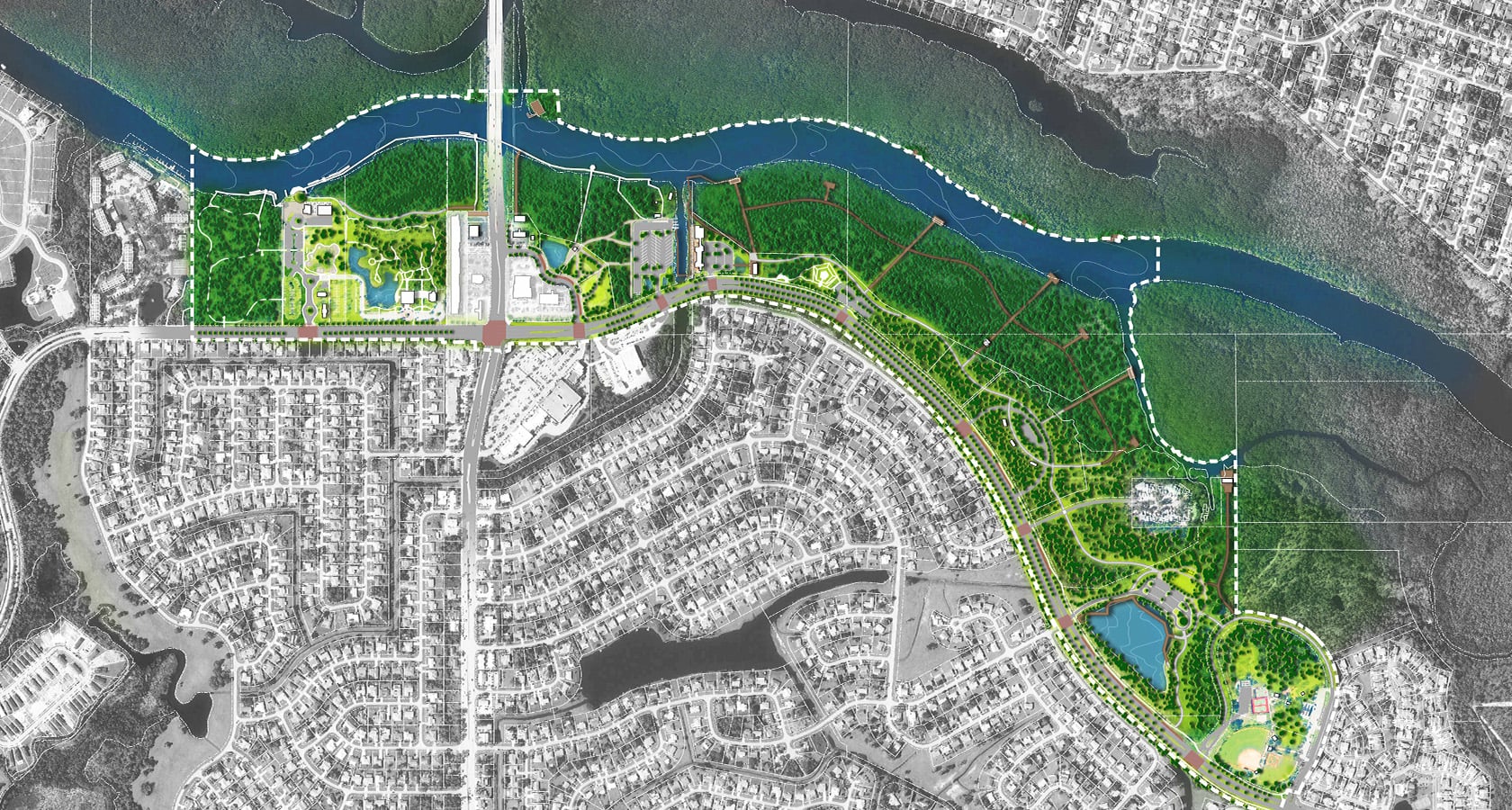 Situated on the St. Lucie River, the coastal community of Port St. Lucie experienced a wave of growth inland that detracted energy from the waterfront — leaving the community’s greatest asset underutilized. The city had a strong desire to reinvigorate the waterfront and invested in activating several, dispersed parcels with boardwalks, water access points, and neighborhood parks. Knowing these disjointed pieces were negatively contributing to a disconnected experience, the city looked to a design partner to bring a fresh perspective that would breathe life into the riverfront and create a cohesive community destination. LandDesign was selected to champion the master planning process and craft a community-supported vision for a 1.5-mile stretch of riverfront known as The Port District.